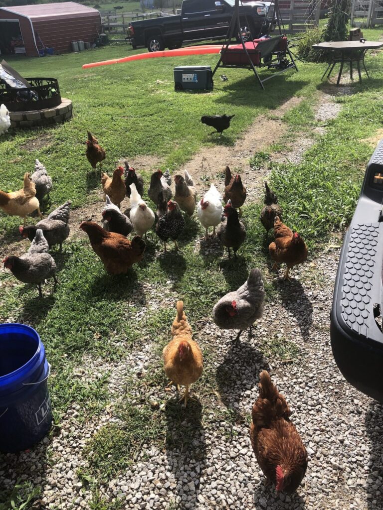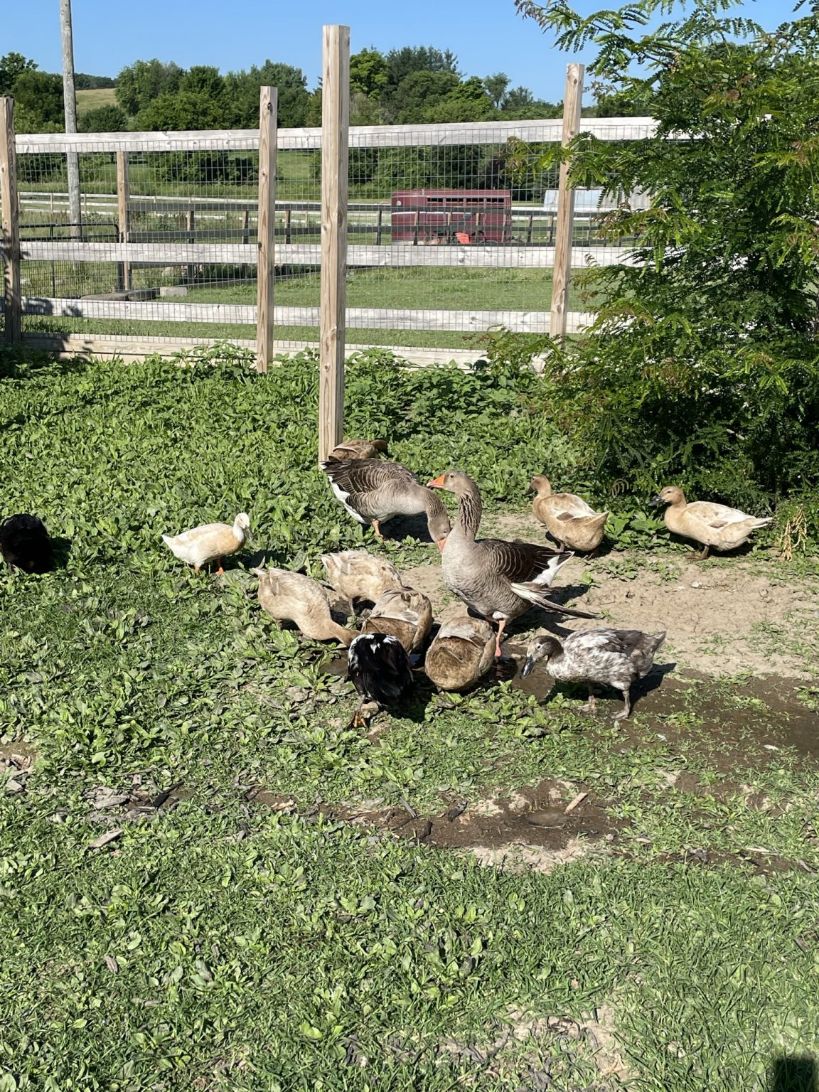 Meet our feathery friends! We have a variety of chickens, ducks and two geese on our farm. They are surprising delightful to work with. Their anticks make us laugh often. We have one duck who has taken to following me around as I rinse and refill the duck “ponds”- little swimming pools. Her objective is finding extra worms or spiders or bugs that may be cooling off under the pools. Her name has become Fisher in honor of her fishing for worms every morning. She is a highlight of my morning. Most of our chickens and ducks do not like to be held but will follow us everywhere around their yard. They have a good size yard to explore but do not get to explore the pasture as we have coyotes that have taken off with a few. So, to protect them, they have an enclosed yard that they happily scratch, peek and dig for whatever delicious morsels they can find. Occasionally, they flap up and over the fence to the front yard to graciously help me till up my flower gardens in search for something yummy. If only they would till up just the weeds and not the flowers!